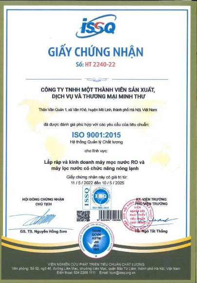 + Chứng nhận ISO 9001:2015 là tiêu chuẩn quốc tế về Hệ thống quản lý Chất lượng do Tổ chức Tiêu chuẩn hóa Quốc tế (ISO) ban hành, được chấp nhận và có giá trị trên phạm vi toàn cầu.